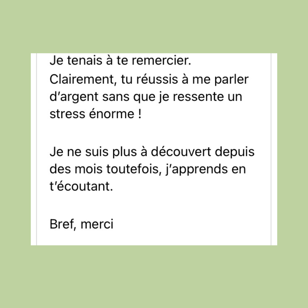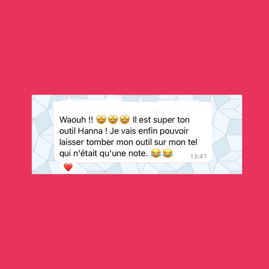 Le coeur qui battait très très fort à chaque dépense, bat en toute confiance. Je fais mes comptes de façon régulière, je regarde mon compte en sérénité même les mois de grosses dépenses. Faut juste déposer les armes et se laisser guider par Hanna. Pas de charge mentale supplémentaire. Pas de contraintes imposées. Juste une belle leçon d’éducation financière qu’on devrait avoir à l’adolescence