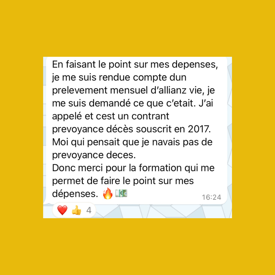 Grâce à elle, j’ai enfin compris où partait mon argent et j’ai stoppé les petites fuites qui me coûtaient cher. Maintenant, je sais dire non à certaines dépenses inutiles pour dire OUI à mes vrais projets.