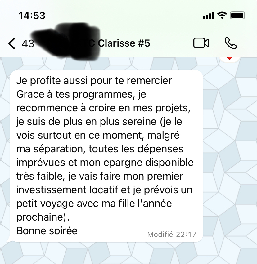 La plus grosse transformation a été la réelle prise de conscience pour gérer mes finances et en plus avec beaucoup de plaisir.